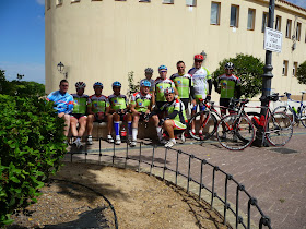 Nos volvemos a reagrupar, pero en cuanto salimos de la localidad melonera, desparramados de nuevo. Y no es una cuestión de ritmo alto, porque yo ruedo delante y se va muy agusto. El caso es que de nuevo cuerteto: Manquillo, Puerma, Alfonso y yo. Un par de kms después se une Txema. Juntos llegaremos al cruce. Giro a la derecha e inicio de la  "ascensión" al Castillo de Chinchón. Pero no voy fino. En cuanto el bombero lo pone un poco duro, veo que voy a subir solo. No me sacan mucho, pero llego arriba con unos 50 metros perdidos. Esta vez no regreso. Me quedo a esperar. El grupo va llegando con cuentagotas. Cuando aparecen Los Minaya, tomamos rumbo a Belmonte de Tajo.
