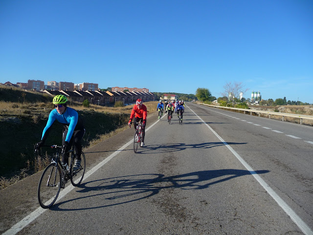 Reparada la avería volvimos al tajo y entre Diego, Antoñito y algún máquina más, nos estiraron el cuello camino de La Radio. El repecho de la gasolinera se subió a 28 y me sorprendí a mí mismo aguantando en mitad del grupo. Luego se mantuvieron 32-33 km/h con viento de cara y un silencio en la grupeta que llamaba la atención: