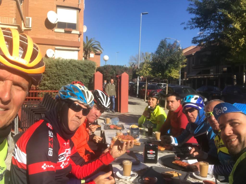 Llegábamos a San Martín de Pusa a las 9 de la mañana y tras elegir una zona de aparcamiento, junto al bar Filos, que estaba cerrado, nos protegimos con ropa para mitigar esos 5º que había en esos momentos. Luego nos acercamos al bar Daniel para tomar un café y salir con el cuerpo entonado. Muy amables en ese bar. Me acordé mucho de David, del blog Manzanilla en Bici que seguimos en el nuestro. Sus abuelos son de esta localidad. Espero que lea esta crónica. Conocerá, sin duda, muy bien esta zona. Tras el café, montamos las bicis y salimos hacia Villarejo de Montalbán, encontrándonos de salida un puertecillo de 4 kms y zonas al 8%. ¡¡¡Vaya si entramos en calor !!!: