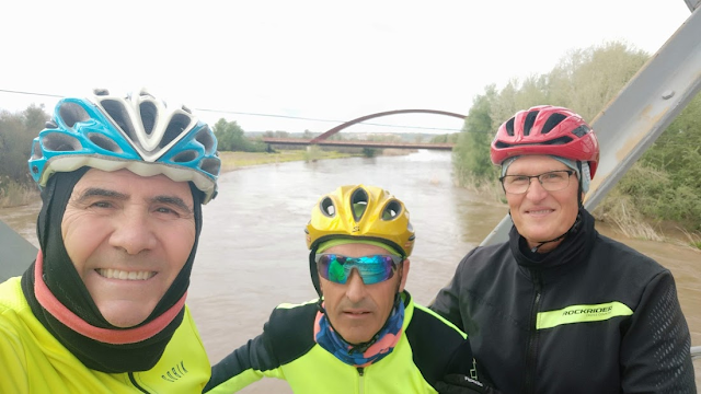 Creciendo el grupo y creciendo la grupeta de jubilados. Recientemente han sido Juan Carlos y Sanda los que han pasado a engrosar la lista de jubilados. Que yo sepa, ya solo son cuatro los fundadores de Ciclistas de Valdemoro que se mantienen en la grupeta de pros: Tomás, Toñín, José Manquillo y José Luis Rodríguez, sin olvidar a Fernando Manquillo, que apenas sale. Los demás estamos en la AJA. Los años no perdonan y mantener el ritmo con los pros es complicado, por lo que es más aconsejable llevar un pedaleo más tranquilo. Algunos, como Carpintero, Millán, Puerma, Coke y Jávega, todavía tienen chispa para aguantarles, pero prefieren disfrutar a ir con los ojos colgando. Eso no quita que alguna que otra vez, nos pongamos de acuerdo para hacer parte del recorrido juntos, pros y AJA, aflojando ellos y estirando el cuello nosotros, pero en cuanto llega una subida, irremediablemente, cada uno se queda en su sitio. Eso sí, somos felices con esta dicotomía.